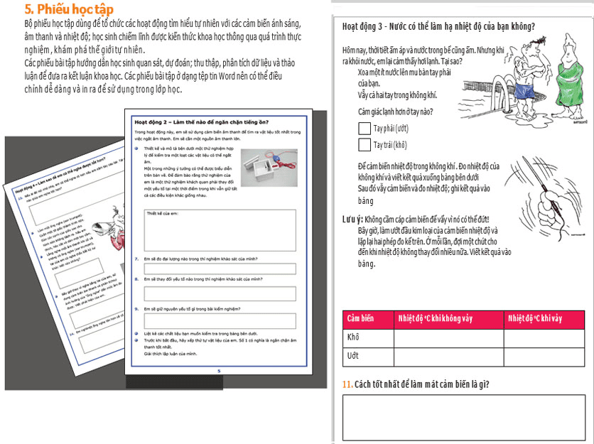 Các chủ đề STEM ở tiểu học giúp học sinh thỏa sức tìm tòi, khám phá về trái đất và bầu trời, con người và sức khỏe, thực vật và động vật, âm thanh, ánh sáng, nhiệt và nhiệt độ. Sự tích hợp của các công nghệ thu thập số liệu hiện đại cùng với hệ thống bộ Kit và tài liệu hướng dẫn đi kèm ứng với mỗi chủ đề sẽ đem lại những sự hỗ trợ đắc lực cho cả giáo viên và hoc sinh trong quá trình khám phá thế giới tự nhiên và thế giới công nghệ.